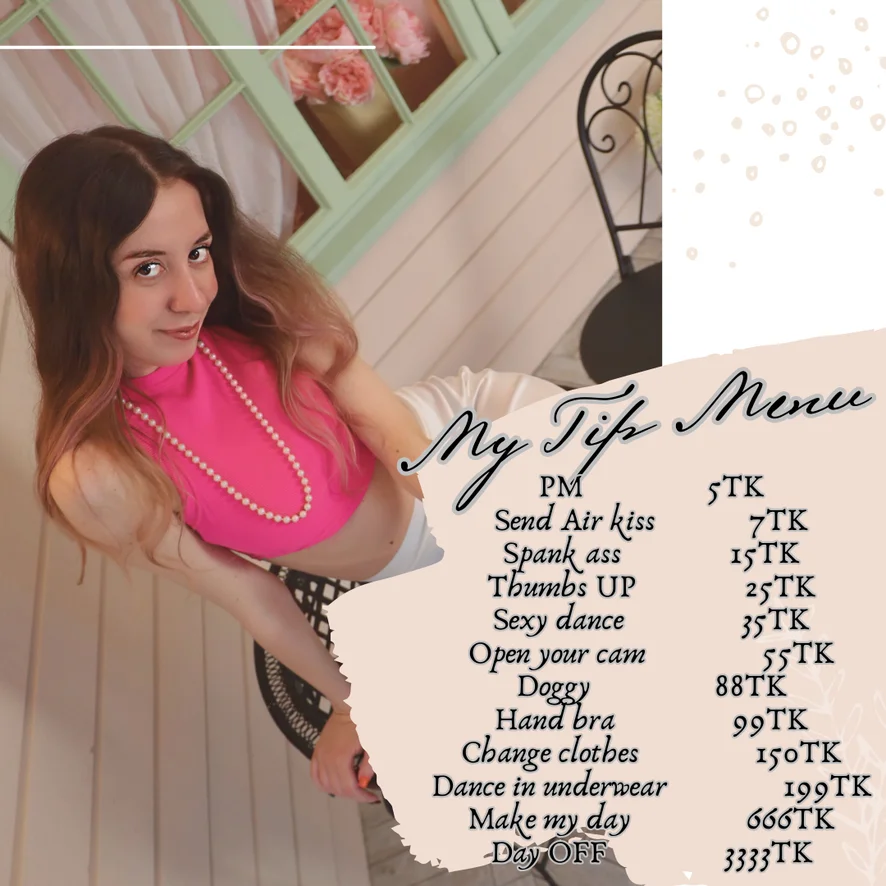 Ahegao, Upskirt, Cowgirl, Doggy Style, Spanking, Flashing, Twerk, Cosplay, Yoga, Smoking, Facesitting, Camel Toe, Erotic Dance, Foot Fetish, Role Play, Dirty Talk, Mistress, Heels, Tittyfuck, Blowjob, Shower, Gagging, Masturbation, Squirt, Oil Show, Humiliation, Topless, Striptease, Cock Rating, Orgasm, Fingering, Facial, Jerk-off Instruction